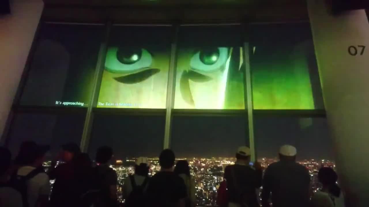 Специальный эпизод, показанный на экранах в Tokyo Skytree и демонстрирующий битву с Колоссальным титаном. В этой вселенной персонажи аниме «Атака титанов» являются частью некого «Небесного корпуса» по защите японской телевышки Tokyo Skytree. Однажды корпус обнаружил, что сооружение подвергается атаке со стороны огромного количества титанов, в том числе и невероятного Колоссального титана, высотой около 350 метров, который неожиданно появился рядом с «Небесным деревом».